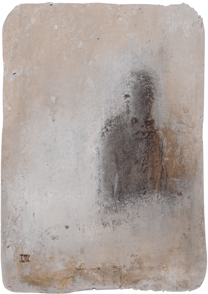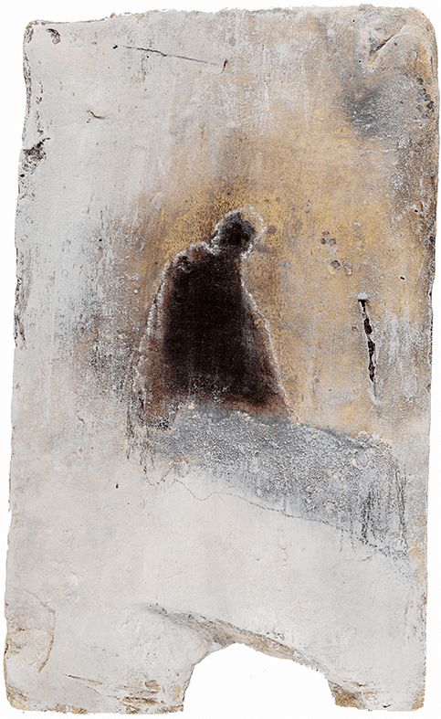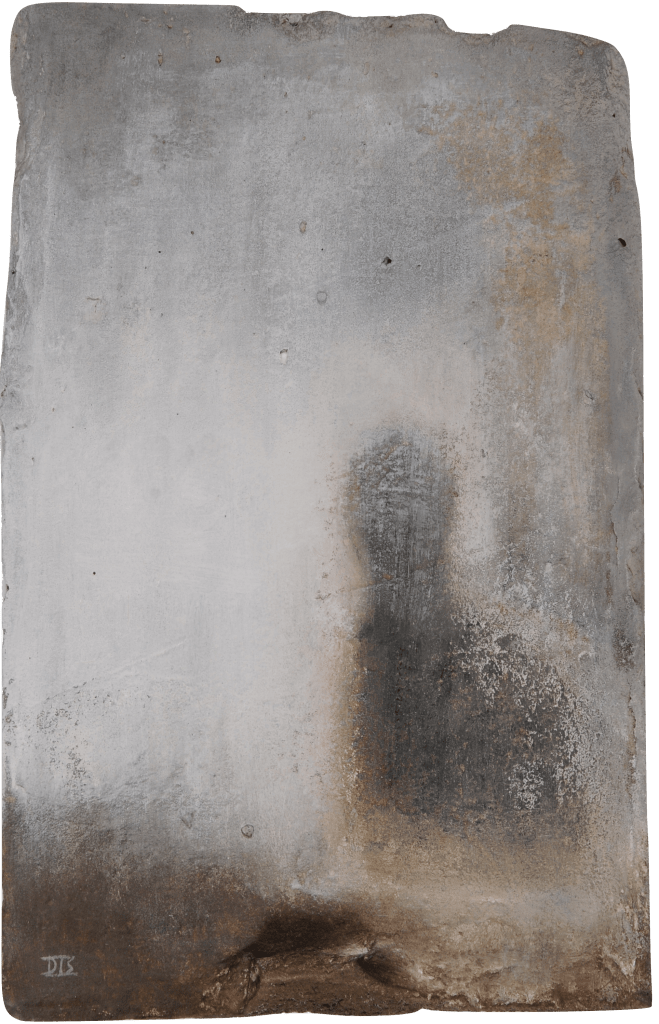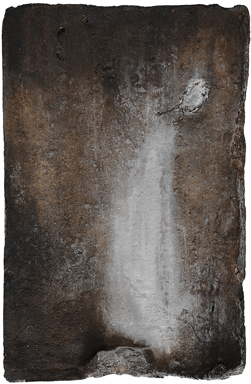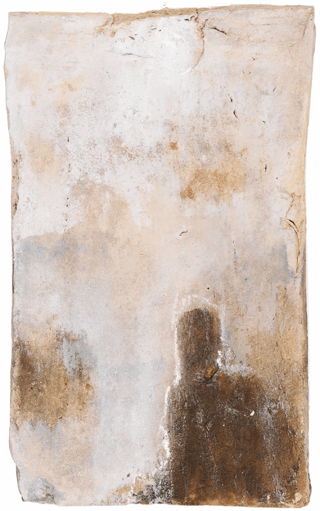 Inès da Silva Fkatchouk confronte un outil de construction (la tuile) à la peinture. Celle-ci révèle la géographie que le temps a développé à son égard. L’artiste utilise la matérialité de la pierre pour explorer sa mémoire, rendant visible un ensemble de silhouettes et de visages qui font partie de son histoire. Cette recherche personnelle vient s’entremêler avec la
